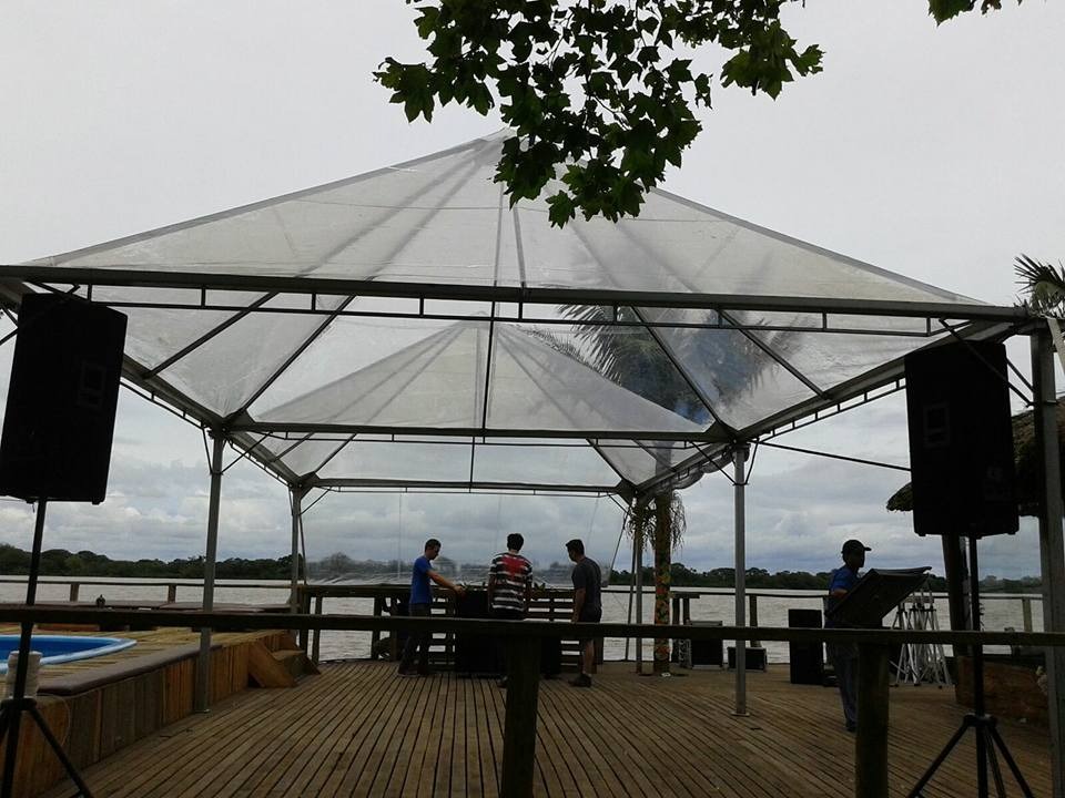 Proteção versátil e elegante para eventos de qualquer clima. Pode ser instalada fixa em